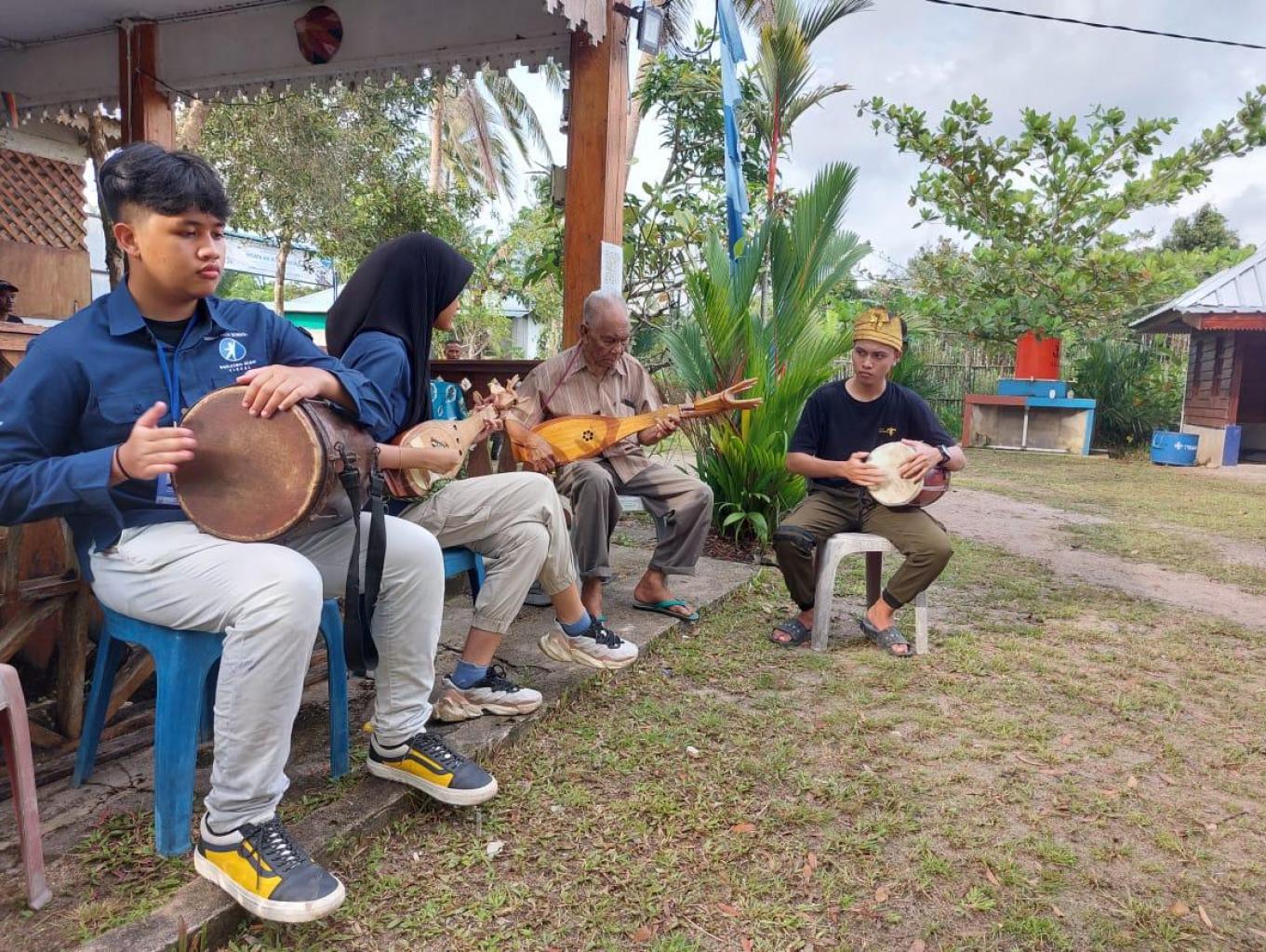 Musik Gambus merupakan musik yang bercirikan khas Melayu Belitung. Syair-syairnya banyak mengandung nasehat-nasehat dan pesan-pesan keagamaan. Pemandu kegiatan atraksi belajar musik Gambus ini adalah pimpinan Orkes Gambus yang ada di Desa Wisata Kreatif Terong. Orkes Gambus ini biasanya terdiri dari pemain alat Gambus, pemain Gendang, pemukul Gong dan vokalis. Biasanya kalau jumlah pesertanya ramai maka akan dibuatkan kelompok-kelompok yang masing-masing kelompok terdiri dari lima orang. Sehingga memudahkan pemandu untuk mengajarkan kepada mereka. Yang seru setelah mereka diberi kursus kilat belajar musik Gambus kemudian mereka diminta untuk menampilakn performance langsung. Nanti masing-masing kelompok akan menunjukkan kehandalannya.