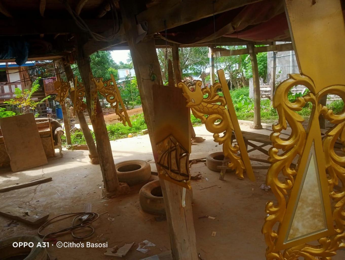 di buat dari kayu Bitti atau cendana dengan tekstur ukiran yg biasanya dipasang di anjungan rumah sbgai bagian dari strata sosial masyarakat.