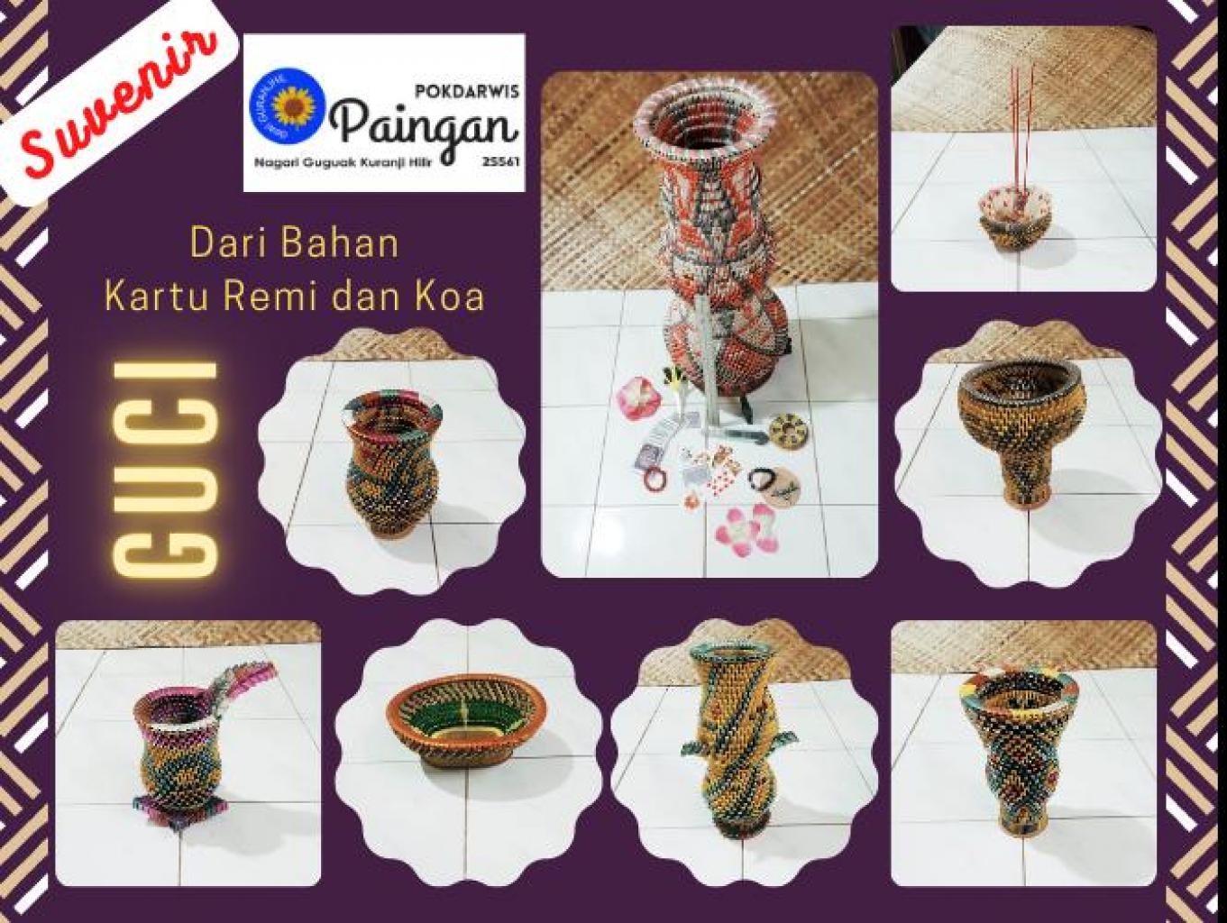 Biasanya, selesai bermain.. kartu koa/remi dibuang oleh pemilik warung. Nah! limbah ini bisa dimanfaatkan dan dirubah menjadi bernilai ekonomis. Terbentuklah Guci sebagai Ekraf sebagai kegiatan di Pokdarwis Paingan.