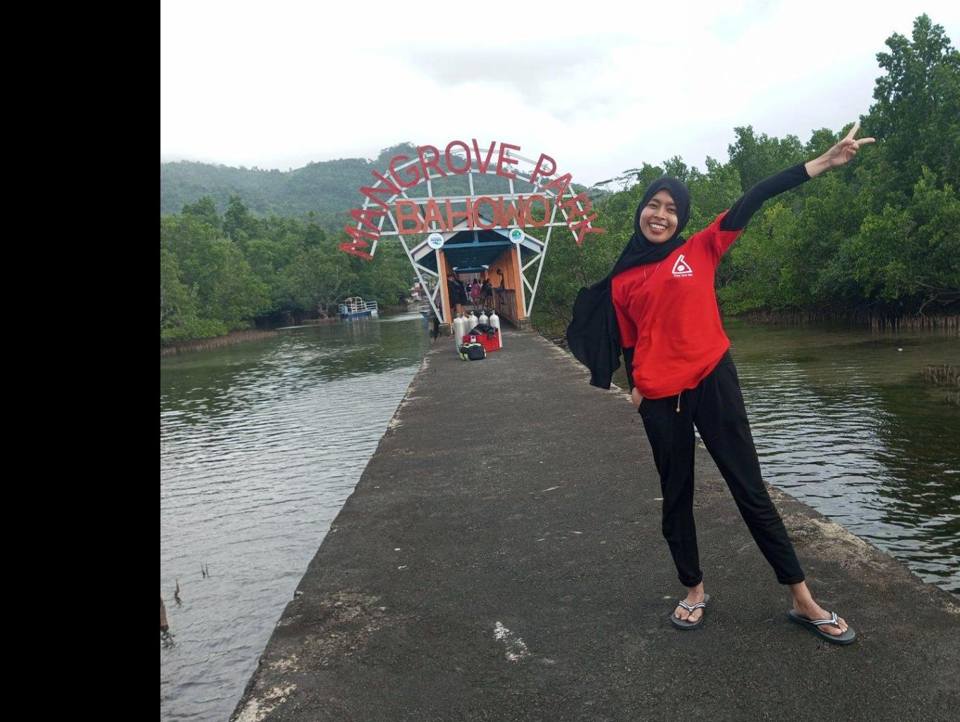 Dengan menggunakan Kano pengunjung akan berpose ( selfie ) sambil melintasi hutan mangrove dengan menggunakan Dayung serta di perlengkapi life jacket.