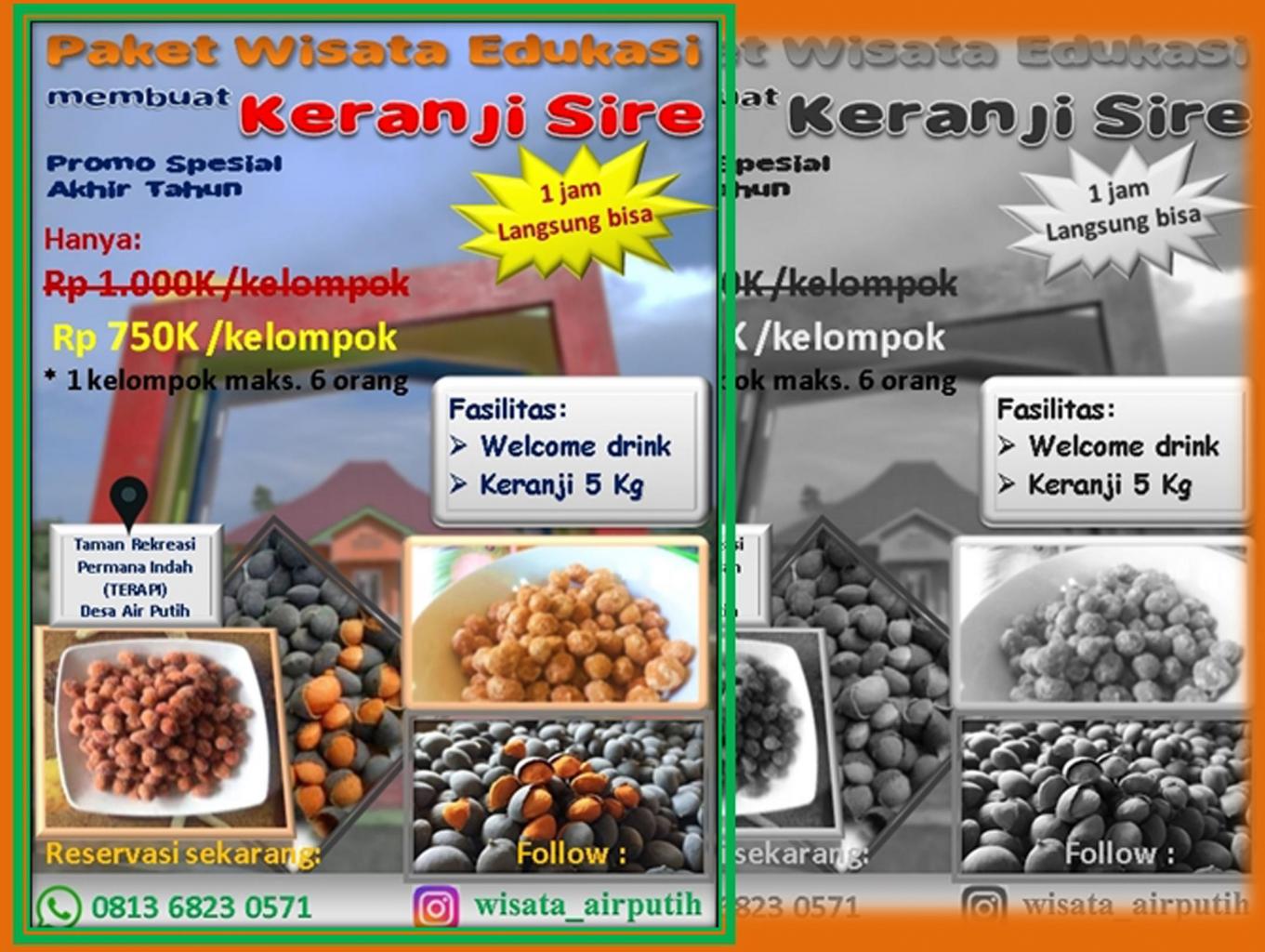 Para pengunjung akan diajak dan diajarkan serta praktek langsung membuat manisan keranji. dengan membayar harga sesuai paket tersebut, pengunjung atau wisatawan dapat membawa pulang oleh-oleh keranji sire. pengunjung juga disuguhkan welcome drink berupa es nata lidah buaya..